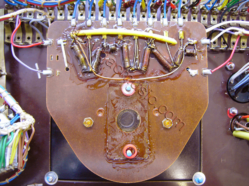 Originally the multi meter seemed not so good, and had errors of a few percent depending on what scale, and current range. I did not investigate exactly where the errors came from, but I took it completely apart, even the moving coil was removed to clean the bearings and the magnet. I do not recommend this to do yourself, as it is not really made to take it apart. I had to re-glue the glass from both sides too, and many small work. After this was done, I found out there quite some error in the ladder network. It may well be it was never calibrated any better. For calibration, they used wire wound resistors, of which they scratched off a thin layer with a knife. The scratchings were still visible, and after that it was lacquered. I found the same method of calibration in an AVO8 multimeter, and in my Tektronix 576 curve tracer, where they laser tuned the resistors of the ladder network, but not lacquered. then afterwards. So you see, even when the case of the W19 is of cheap wood, and the Tektronix 570 looks like a Rolls Royce inside, Max Funke to my opinion did a better job. Anyway, for the fun of it, I calibrated the ladder network better than 1%, by adding additional resistors in parallel, and then scrape off some more off the wire wound resistors, as needed. Nor forgetting to lacquer them afterwards with two components glue :)