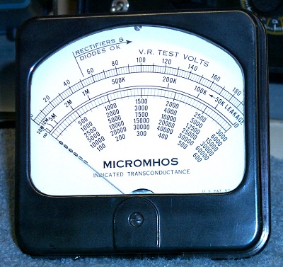 Meters like the later Hickoks use ultra thin hair stripes with a much finer resolution that the whole tester can ever have. The meter shown here is not even so bad, there are much worse examples. You read something 'very' precise from a fine scale, dividing the 1500 Mmho range in steps of 25Mmho. (this is so crazy.... 25Mmho on a 5% error tester). So the difference is indicated between 1475 and 1500 Mmho. This can never be so because the whole tester had 5% deviation at it's best when it was new. (At this scale 5% is 75 Mmho). Well and some are even 15% and they use the same meter. Did they know this at Hickok? Well of course they did! The older Hickoks like I-177 do not suggest a higher accuracy as it actually has. You can read the Gm scale only very roughly, which more represents what the tester is actually doing. And nooo... If you think now the I-177 is imprecise, you completely missed the point. It has the same precision as any other tester. Just be aware that the later models with the very fine hair stripes are also 15% precision testers, and you can't change that by using hair stripes of 1% resolution.