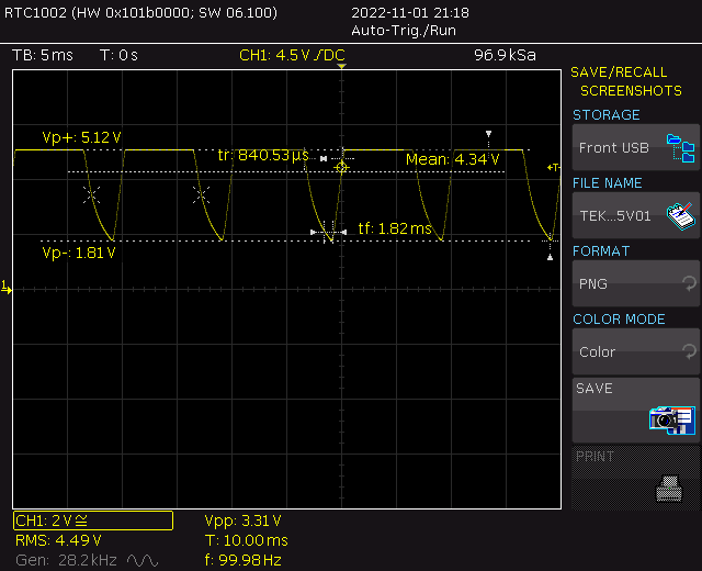 This picture was send un 2022 by Robin Chatterjee, after repairing his 576, with the same error. Here you can see the 5V collapsing due to the capacitor not having enough capacity any more