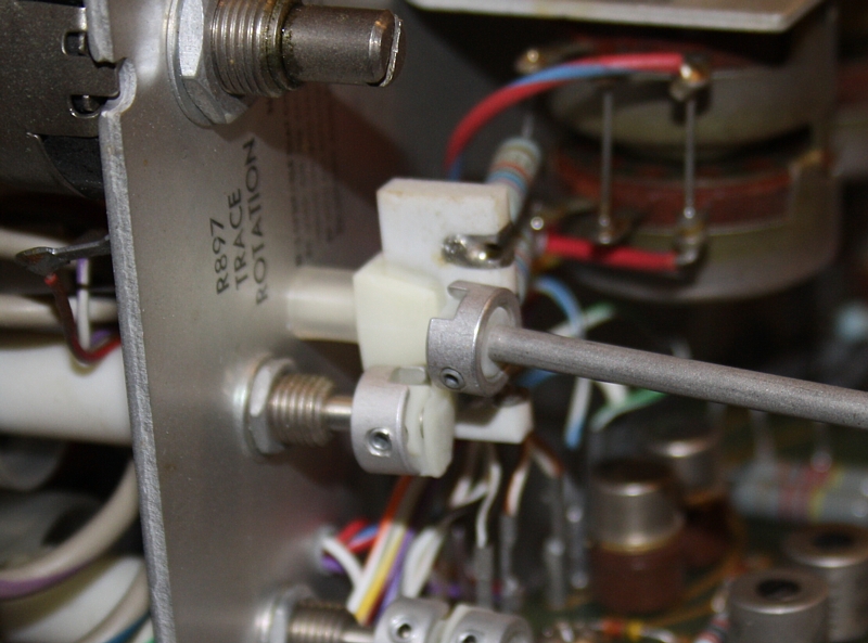Cardanic Unit broke off. This is from the scope tube brightness. It's crazy but I could just buy original old replacement parts in Tektronix packaging on Ebay. (see below)