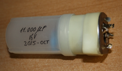 To remove the capacitors, first you need to pull of the plastic cap, by hand. To get the capacitor out, you can do this from the visible side, but you can't get the screws back in for the replacement. To do this, you can carefully take out the small High Voltage box. No need to remove the oscilloscope tube. Hint: There is one nasty screw that you can't get out easily. Use a normal, flat screw driver, and then it works. You can use that under an angle. Like this I could remove the screw, slide out the box, and reach the capacitors from the other end, with my hand inside. I was able to fit new capacitors very easily inside the cap of the old one. Just saw off the cap. It was almost no work, and result was perfect. You can hardly see the repair afterwards! After I did this, the 5V supply was good again, the digital step generator worked, and the 12V circuit worked better also. Don't know exactly how, but the different voltages relate to each other. Like the 12V circuit produces the reference voltage for the 5V circuit.