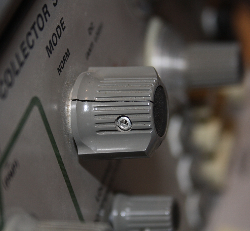 This long term damage occurred, because the inside metal part is pressed into there with great force. No good idea for plastics. This seems to happen often, so old knobs are expensive on Ebay. I repaired this knob with JB Weld, which has the same gray color. You can hardly see the repair. So no need to pay 25$ on Ebay.