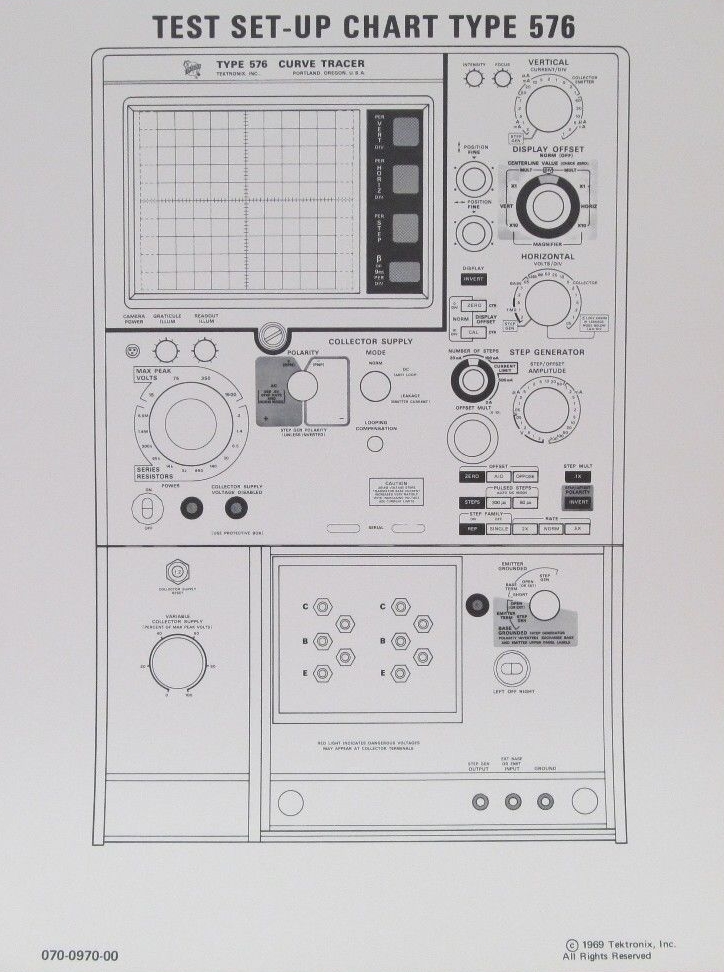 As you can see clearly, at Tektronix they must have thought the days of tubes were over at that time. Well we all thought that, though it was wrong. It is a pity, because for testing triodes all it lacks is a heater voltage. This can all be simply added to the fixture with two banana plugs and an external power supply. Probably the superior versatility of the 576 will allow some testing options, the 570 cannot do. I expect to find that out later, and will update this page when I know more.