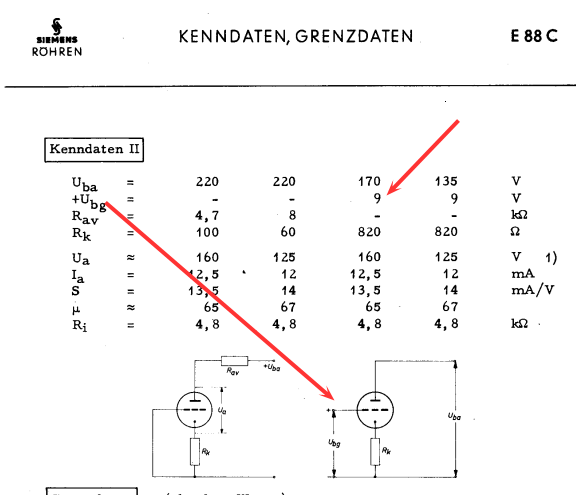 The bias method is in between auto bias and variable bias. Called mixed bias. This is in accordance with the data sheets of Siemens and Telefunken for high quality tubes, such as E88CC and D3A. So this is not something we invented here, but simply using the test method as described in the data sheet. And no, in the Telfunken data sheet is not written, E88CC has to be tested with fixed grid voltage. Testig with fixed grid voltage is WRONG, and you won't find that in any data sheet. In the Telfunken E88CC data sheet, is given the test circuit for mixed bais. It is just what we do here also, with this burn in device. Here is an example. It is done, by constructing an auto bias circuit first, but the grid is not grounded (as with auto bias), but connected to a fixed or variable DC voltage. This voltage can be positive or negative as well. In case it would be adjusted to zero volts, the tubes bias becomes classic auto bias. If changed to negative, the tube still would be in auto bias still, but now at lower current. If changed to positive, we can increase the current, and we can go as far with this, as the voltage drop across the bias resistor. (Above that, the tube would have positibe grid voltage, which is not allowed, and the White LED will burn very bright, showing this fault condition). So positive or negative control voltage, this tester can do both, and actually to very high negative values. Meaning we can fully cut off the current of the tubes, which is a very useful test. Also we can increase the current so much, we would even drive the tubes with positive grid voltage. Though this appears to work, most tubes are not intended for it. If the grid current LED begins to burn, we are above 500uA for the whole test board, and above that it is not desirable. Actually the prevention of grid current results automatically, when we bias the tubes as they should, by the test data on this website. Like when the test table says to use 2mA, you could set the tubes 4mA still, but that might cause grid current, making the test result invalid. Also possibly damaging the tubes. So doing that is not a good thing.