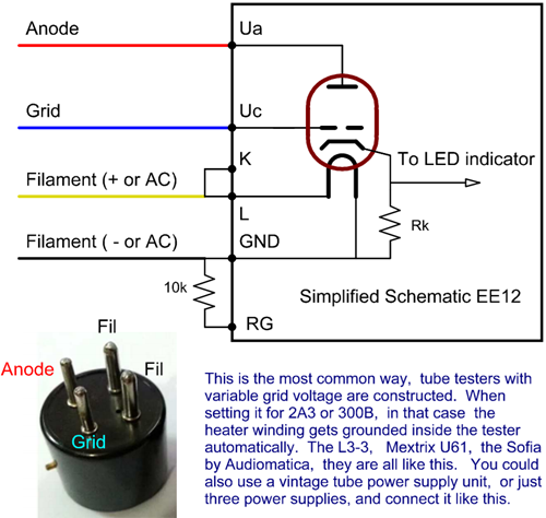 - When desired anode voltage is achieved, all LEDS are off. Now adjust the grid voltage, making it less negative, and have the LEDs burn as needed. Small differences are normal, but basically all tubes should respond the same. If one tube responds much different to changes of Ug, this probably indicates a defect.