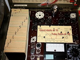 Original box. Mint appearance, mint test results. You get a full test report with it, transconductance, gain, bias, plate impedance, and more data. Done with Amplitrex tester. From old German army stock. (BwB stamps on some of the tubes added) |