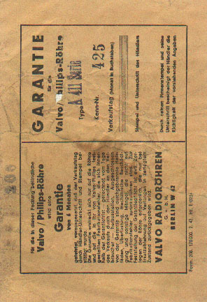 Original very old card box. Most have date code 1945 and VALVO Hamburg stamped on the box. This shows once more the close relation between Philips and Valvo Hamburg.