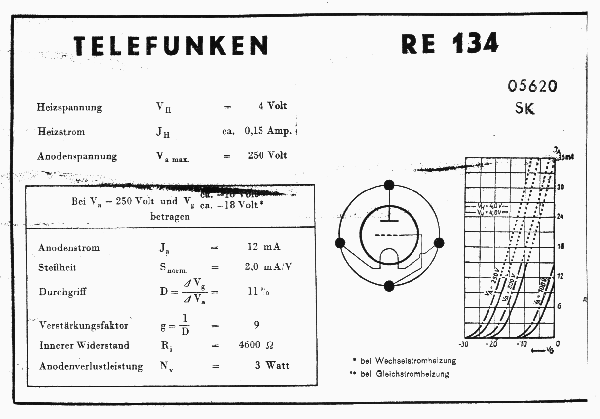 This is re based MULLAR UK tube, with a B4 socket, and it is fully equivalent to RE134.