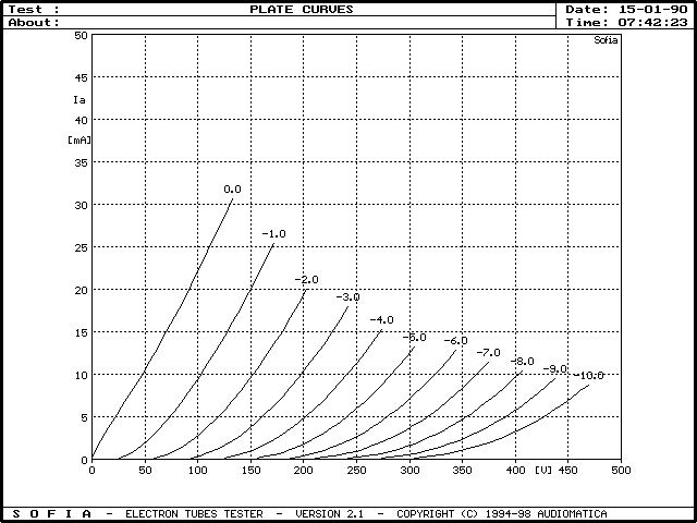 The strange shape of the 0V curve is typical, and of course the bias point at 250V 10.5mA is totally wrong.