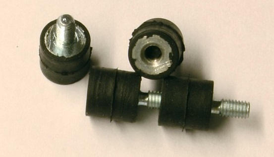 Note: the damping can be made softer or harder, by screwing in the screw from 3mm to 6mm. Since the tube socket is not heavy, 3mm is the recommended value. Most amazing is the strength of the rubber, and yet it is still so flexible. These are technically very nice made items, and four of them together cost not more than an average tube socket. The 3mm threaded part you see attached on them, is used to mount them on the base plate or on the socket. Then the thread hole you see, attaches then to the chassis. The method to adjust their stiffness, is by selecting the right length of the screw. Or adjust with mounting rings underneath. Like this you can firmly attach them, and yet adjust them as well.