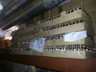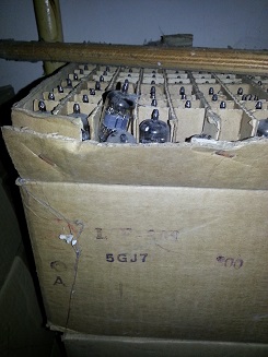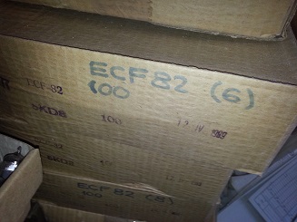 In the basement of the factory was the tube stock. Here are some of the pictures from November 2013, when this was sold. These were 250.000 tubes, mainly ECF80, ECF82, 6GH8A, EY500, EC900, many P-Types, all made in the seventies and eighties.