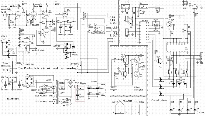 What you see here, is the normal was for 300B tubes, using light bulbs as load resistors, giving a stabile bias, and being a fuse at the same time. Also this is giving a quick indication if a tubes work good or not. A nice and classical method, used all around the world.