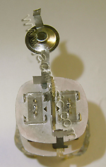 There is a small mica plate mounted which has the function to align the cathode with the grid precisely. This is the critical part of the tube, the grid-to-cathode distance. It must be really precise. |
