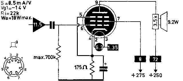 SINGLE ENDED, 9.2 Watt Output Power at only 275/250 Volt Supply Voltage!