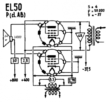 Conclusion: EL50 is Not an EL34 with a top cap. EL50 (or 4654) is the better choice when you operate at medium voltage, it uses less power from the power supply, generates less heat in the tubes, and will give still more power at (much!) lower distortion. The disadvantage is the plate cap, but for that you get a far better tube.