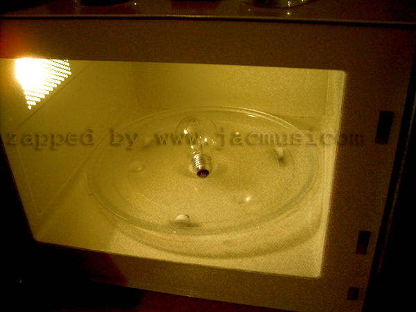 Folks .... don't repeat any of this. You're pumping 1Kilowatt per second into the zapped articles, and that is very very very much. Specially if you heat something and you see nothing happen, the articles can explode from that INCREDIBLY HEAVY. When you go too far, a real loud explosion of the zapped articles may happen, without pre-warning like smoke signs or noise. It just explodes enexpected. Even many seconds after the power is switched off it can happen. An overheated glass of water can turn into vapour with an explosion, AFTER the power is switched off, blowing out the door and you get burned. Yes it is possible. Glass particles can break through the window of the oven, or the oven door can be blown out unexpectedly and very violently when this happens. Articles can explode AFTER you open the door. So this is all very dangerous. JUST DON'T THINK OF IT.