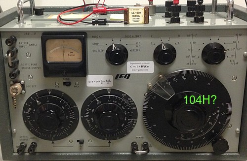 Hewlett Packard 4350A. This a Capacitor tester which I saved from the scrap when I worked at Hewlett Packard. It still works good, but lowest is 1uF full scale. But for that it can test up to 300.000 uF. It can do maximum 100 Volts bias, or up to 600V with an external bias supply. I tried this with plastic gloves on, and it works, but I don't want to do that any more, it is just too dangerous, hooking up 600V up to this item with an external power supply, and you don't really know how it can go wrong.