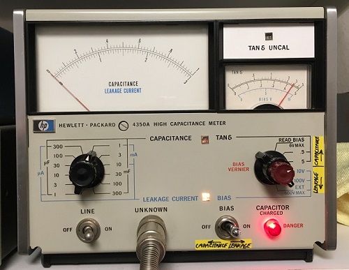 industrial LCR testers are an alternative, which do an excellent job, but they are costly, and most of the time do not have the capability to test under high voltage. Which is however needed when a higher voltage is printed on the capacitor.