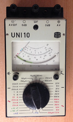 Ebay. The UNI 10 looks not attractive, and we learn on Ebay quickly, that non-sexy items are low cost. And yes it looks so boring, you can find a UNI 10 anywhere from 5 to 25 Euro, depending on it's condition. You need to know the "UNI" meters were the workhorse in the technical departments of the socialist workers paradise where they were made. So sometimes a German seller has more than one for sale. The ones that are directly from dirty depots, don't buy any of those. There are many other types of UNI around, but these can not compare with UNI10. Buyers don't understand the difference. So a nice looking UNI-7 may score a 5x higher bid than a UNI 10 which looks less nice. Yet UNI-7 is worthless, and UNI-10 is a pearl. People just don't know it.