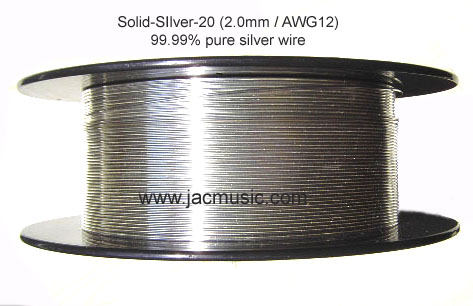 Make your own silver speaker cable with this!Solid Silver Wire, with a solid 0,8mm /AWG20 silver core, soft out glowed. This cable is double isolated, and the resulting cotton isolation is very strong, and will not damage when you walk over the cable. Inside is first only layer of white cotton, and over that is a second layer of cotton in color. Application:For speaker wires. You can use it single wired, or twist a double wire. When you twist it, order 5% more length because you loose this from twisting. How to twist? Here is how to make a cable from 2x red and 2x black. So 4 wires, going to one loudspeaker. For 2 speakers, and each is 2 meter away, it needs 4 meter cable in total. So 8 meter red wire, and 8 meter black wire. Take an electric drill, and put a screw hook in it. Fold the 8 meter piece in two, so you het 4 meters. Solder the open ends together provisionally. Tie this end to a table leg. The other end you pick up with the screw hook. Use the drill with small force, and stop when the gets suddenly much shorter. Let the length shorten some percent. You can't oversee this. Take the hook out, and repeat with the other color. After this, you have two twisted cables of 4 meter in front of you. Now put the hook in both cables together, and rotate the drill in the REVERSE direction. The cable will become a little longer again from this, and just drill it mildly, until you see the cable is tension free. It will have a very professional "feel" and is as nice as any ready bought silver cable! If you have no drill, you can also use just a small stick, and rotate the cable with that by hand. Just takes you longer. This will now end with 4 meters of 4-wire cable. Cut this piece in two, and you are done. For a vintage look, finish the wire ends like this, using white wood glue to attach the wire, or just attach shrink sleeve at the ends.