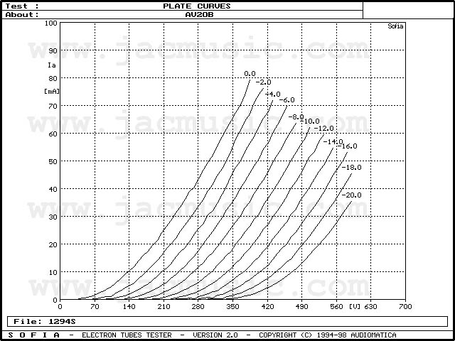 The AV 20B / AV20M is a very universal and stabile tube, combining high gain, with a low output impedance. At a gain of 20, at only 11 Watt dissipation, there is no comparable directly heated tube, that offers a plate impedance of 3200 Ohm.