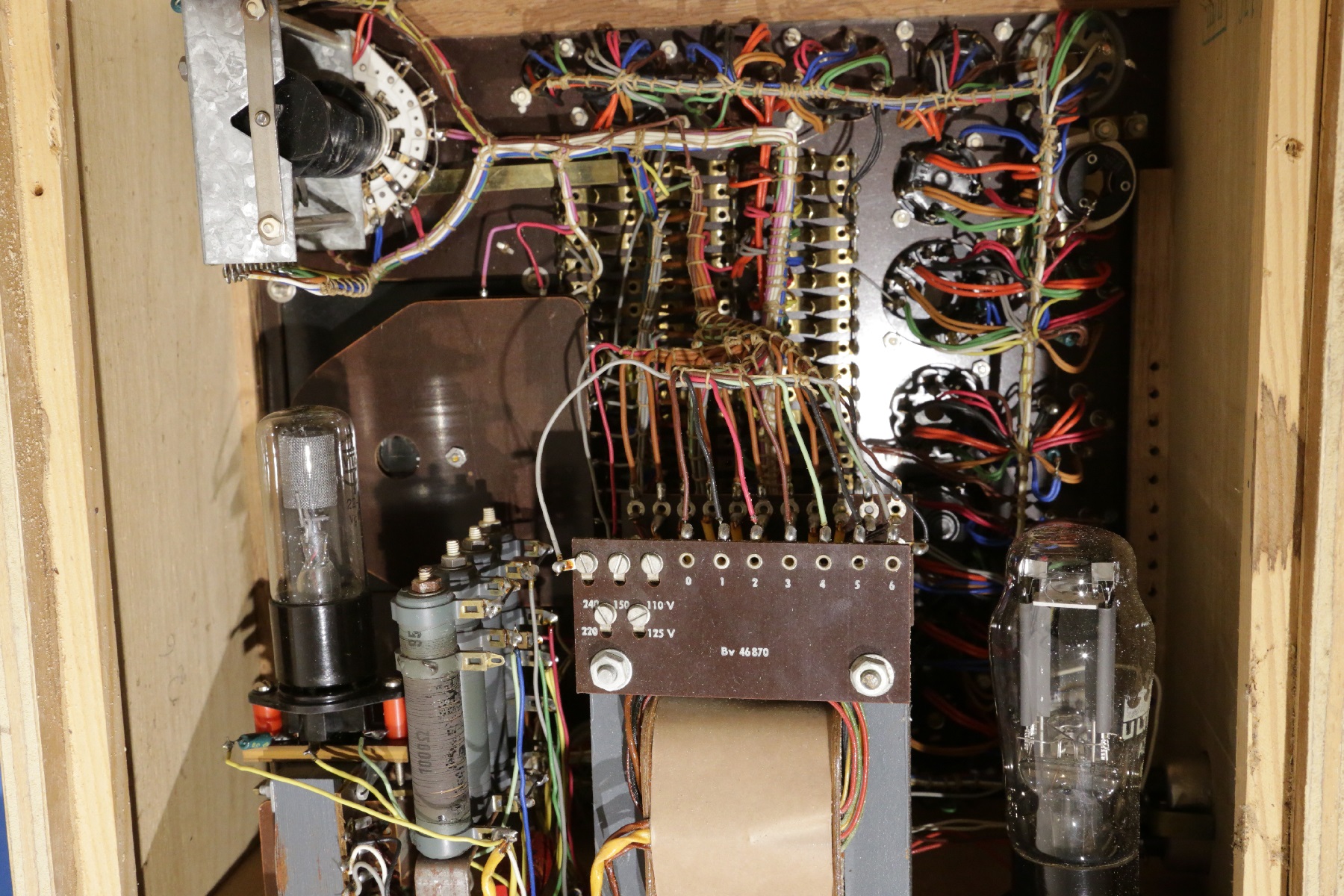 The mains transformer and it's voltage settings.