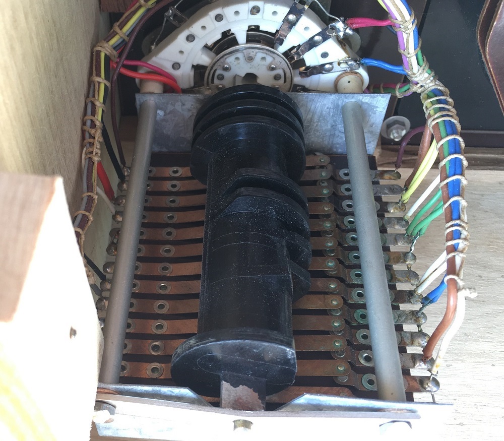 The “finger switch” as you can see on the inside, is the heart of the W19, and the only part which will wear out. Though it is very robust, this is something which can still happen. The plastic wheels will scrape off some material, and when the axis will get some play also, contact problems will be the result, and inevitably, people start to bend the contact fingers, and in the end make only a mess. So such a switch needs to be completely removed and overhauled. Lifetime of this switch, as said is very high, but if used in a shop, like 25x per day for 25 years, there comes an end to it. Not to speak about army used W19, which sometimes were used 8 hours per day to re-test large safety stock on a yearly base. In such a case, also the pin contacts in the deck will need re adjustment. Which is very tedious work. With this tester all of this was not needed. The whole tester is almost never used. Really this was a wonderful find.