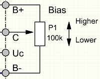 - If the bias is turned clockwise, the control voltage Uc becomes at first zero Volt, somewhere half way. If turned further, to maximum, the voltage becomes positive against ground. (See also the notes at the end of this page).