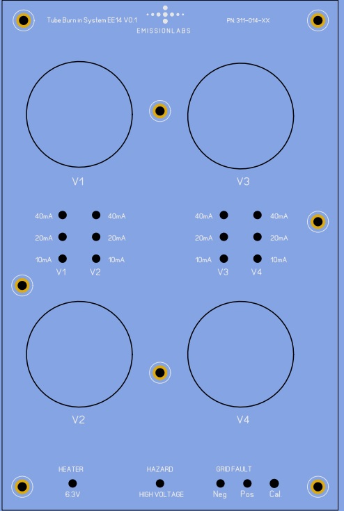 The main purpose is to burn in the tubes and do functional testing. Each board is capable to burn in the tubes, and while doing so, observe plate current, for all tube sections simultaneously, by means of LED indicators for the current.