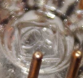 Now, why I write this.... The de Forest tube originally had feed-though of the wires through the glass, of platinum wire, because they didn't know any better. Later, so called 'Dumet' wire was invented. A Dumet lead wire is a copper wire to the outside world, then a borated wire which is sealed into the glass, and then a nickel wire which goes inside the tube. So three pieces are welded together. The borated part melts itself inside the glass perfectly. Dumet is used with almost every tube and light bulb still today, and you can recognize it by it's red color where it seals with the glass, and a trained eye can observe the weld spot too.