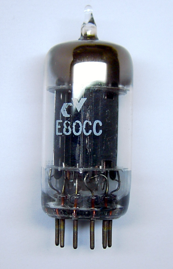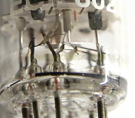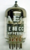 The pictured tube has inside plates that remind me of large plate ECC82, and it doesn't look like an E80CC at all. Still the filament current is the same as with a real E80CC, and obviously the cathode is larger than an ECC82 also.