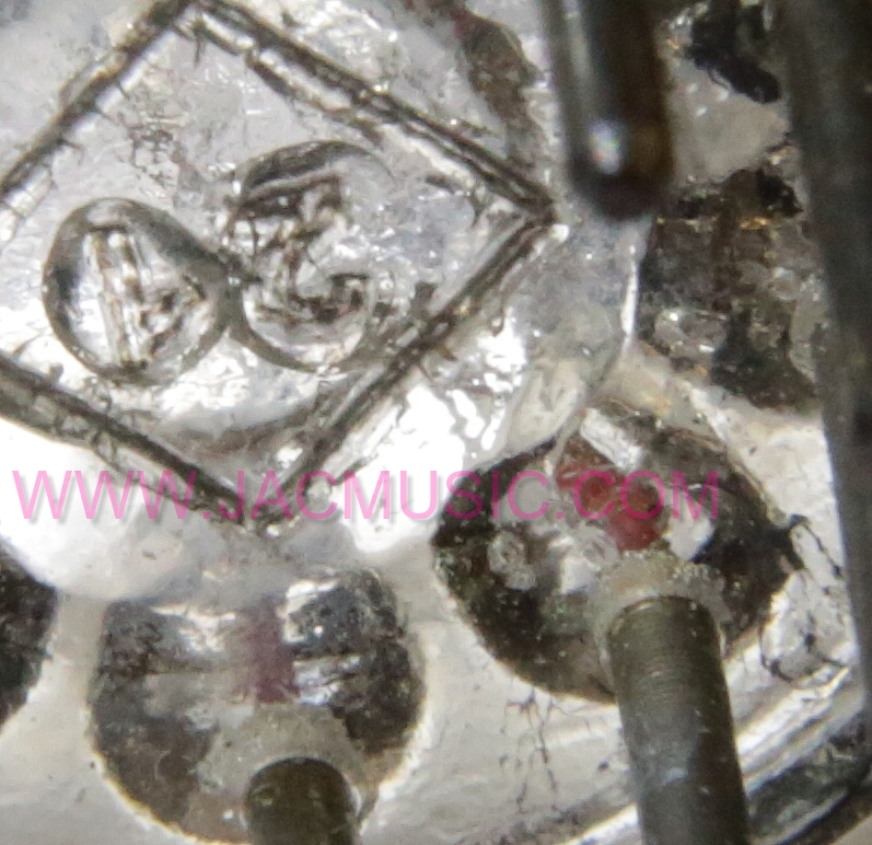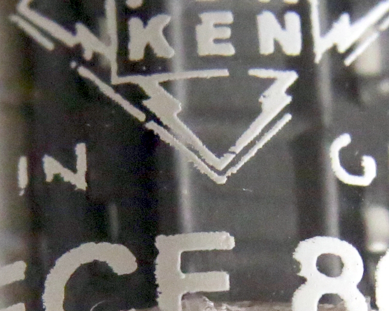 You see, the situation today is, you can still buy a good looking ECC803S copy from JJ. Their ECC803S is made the same way. Just it's JJ tube of course. But if you ask for a data sheet, it lacks all technical details of Telefunken ECC803S. Their data sheet is just like ECC83. They should be ashamed of such a data sheet. This brand, is to my opinion the lowest quality tube available from new production. I had factory new tubes from them, loosing plate current already on the tube tester, while looking at it. That is MAJOR difference with Telefunken, because when they are really NOS, these test exactly by the data sheet. Spot on, out of a 60 years old box, without burn in. They are so painfully accurate, you can calibrate your tube tester with them. Once you have seen this, you will deeply respect this quality. So how to make fake Telefunken ECC803S from JJ tubes? Well, you need to laser the diamond in the bottom, that is easy to do. A cheap method is by laser in negative, but that can be unveiled under a microscope. With some more effort you can laser it also in positive, and even melt the glass at the surface. That gives some cracked tubes, but most will survive it. NOS boxes are still around, I just sold the last 200pcs I had to a German Ebay dealer. A nice person, but it should be clear to you, what he is doing with those boxes. The lettering on those boxes can be made with standard stamps. So what remains is the logo printing. Now here, it gets difficult for the fakers :) The original printing is a so called screen printing. That is this chalky kind of printing, which wipes off so easily. There are also still today a few machines around, as used by Telefunken, with original logos, which were from the lab in Ulm, used for prototyping. I don't know how many of the machines are still alive, but I was even offered one for sale myself for a crazy price (from a company in Switzerland), and I have seen another one in operation with a person in Neu Ulm, who re printed tubes by the 100's in the basement of his house. He did now want to say who he sold it to, but he did say it was in South Germany. His customers were the big tube dealers. These machines however use not screen printing, but a different method. These have a metal print on which the ink is applied by a rubber roll. Ink is not the word, it is a very thick white paint. Then it prints the logo initially on a rubber plate. Over this plate then, the tube is rolled. It is all done in one move, with a handle. The print result is high quality, but it looks still as if it was stamped with a rubber stamp on the glass.