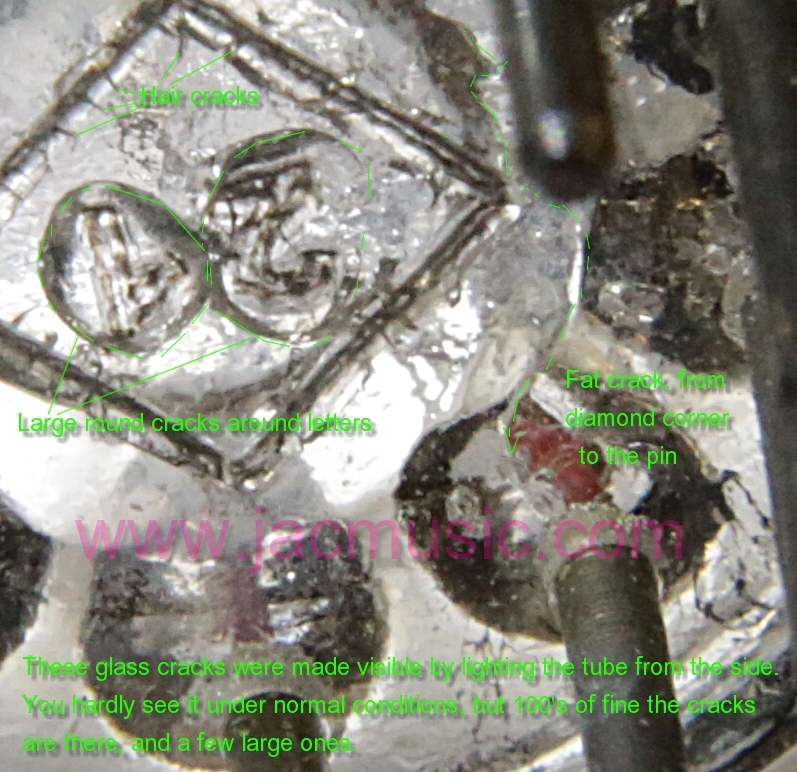 Another case was brought to my attention in 2015 about faking the diamond by laser, and I was able to follow up on this case with more proof. The person used such tubes for this, which have identical appearance with Telefunken, like EI tubes from Yugoslavia. Actually this was old stock from the clearance of the EI factory.
