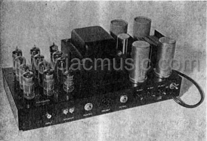 Several products . The pictured amplifier works with 8x 12B4, a VERTICAL deflection tube for TV picture tubes. At the chassis side, it was quite empty. Most of it was wiring and a few coupling capacitors. Look at this fantastic data: Power Output: 10 Watt into 16 Ohms, @ 0.1% distortion. High frequency response: 20kHz at 1dB at full power. 250kHz at 3dB