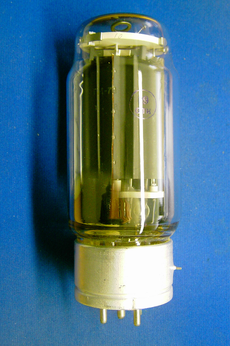 Before we talk about the GM70, here is some elementary information about the 845: The 845 can do 100Watt plate dissipation in class C (as a transmitter tube) and only 75 Watt in Class A (as audio tube). For the 845, this 75 Watt Single Ended is the fatal limit, which means it is possible as a working point for the 845, but really not 1Watt higher. Though this 75 Watt or CLASS B, is really easy to find in the 845 datasheet, it is amazing how many designers think Class B and C makes no difference, and "safely" design their amplifiers at 80% of maximum which they think is 80% of 100 Watt, so 80 Watt bias. Then, another thing comes, even so unknown, it amazes me. All tubes loose additional energy in the plate resistance (Rp), which is a dynamical parameter. So plate AC signal flows through it. (whereas DC signal does NOT flow through it). However, since Rp is thermally located in the Anode, it heats that part up. And this is not very little. So when you are getting 16 Watt out of an 845 stage, you may as well be dumping another 6 Watt in the anode, additional. So the tube runs at 86 Watt instead of maximum 80, and the maximum was 75Watt anyway. It is totally amazing what "great" names in HiFi industry make this mistake. To save money with the power supply they operate the around 1000Volts, and draw 100mA in order to get the power out still. The 845 has not the full efficiency anymore at 1000 Volts, so bias the tube at 100Watt, is the only way to get enough power out of it, and they specify the amplifier at 25 Watt output power, which is a plain lie. (ALLWAYS). You get perhaps 22 Watt at 10% distortion, but that needs 1300 Volts. At Hifi , low distortion level, he 845 gives only 16 Watt provided you use it not below 75 Watt dissipation. As a user, all you can do is wonder why your 845 tubes develop this whisker noise sounding like "shhhhh...." and it comes and goes. It is better to use the GM70 when designing a new amplifier, it is a many times better tube. Please don't ask how to modify an existing amplifier for GM70, it is too late for that once it is made for 845. The Chinese 845, is unreliable because it gets mistreated during shipment. As a dealer we receive them poor packed sometimes, fully unacceptable. After the end-users gets it, the tube has already micro cracks in the Carbon, and that develops a whisker noise sooner or later. Like the 845, the GM70 has Thorium (bright yellow burning) filaments, but the GM70 has much higher filament power. This makes the GM70 can work at lower voltage as the 845, if you want it. The 845 stops working good below 800V. The GM70 works still fine at this voltage. GM70 has the latest Russian technology in, and with this can outdo the 845 in terms of: