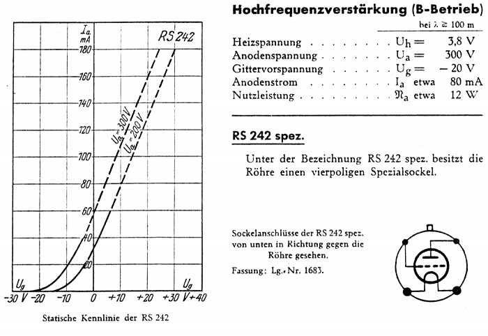 With an appropriate driver circuit, you can drive the RS242 into positive grid voltage, because as a transmitter tube, this would be allowed. This is specialists work, and it requires a very low impedance driver tube. Some say, this makes 4 Watt possible, but I have never tried this.