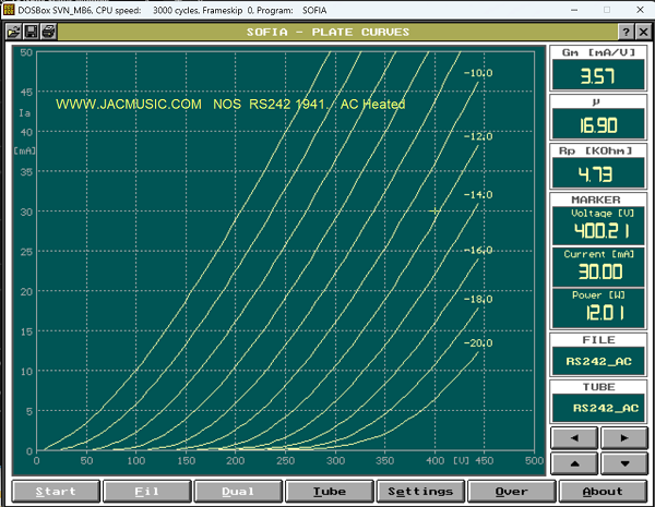 What does this mean for RS242? It is not as low impedance as a 45, but for that is has some other merits. The total package of electrical properties must be seen in combination. When used the right way, the RS242 can easily compete with any other good tube, in a good design. Even when not low a impedance tube, the data sheet allows even 70mA.