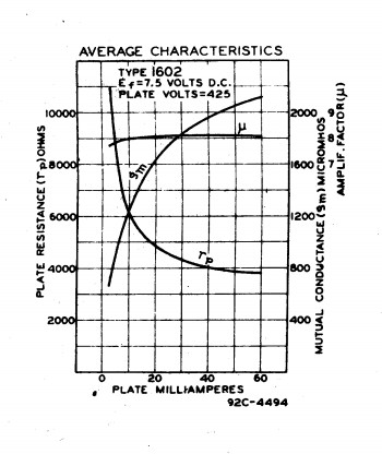 RCA 1610 tube. Gm and Rp at 425V, vs plate current