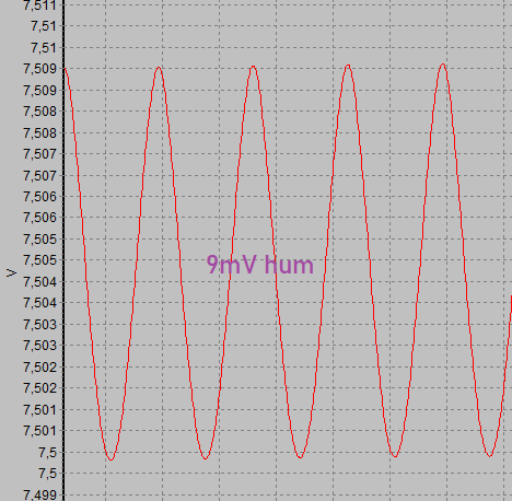 9mV peak to peak hum at the load, of 1-Choke circuit
