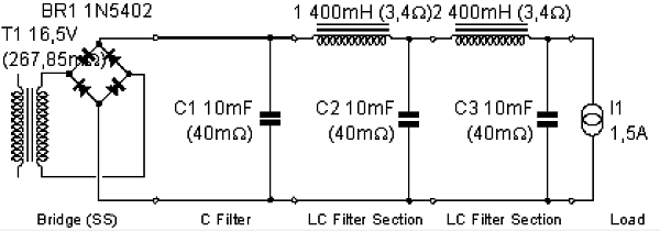 A disadvantage may seem, you need much higher AC voltage, like appr. 2x the DC voltage we get, but given the fact that AC current is smaller, energy has to come from the higher voltage. Overall Effiency is better however, because lower current makes us loose less energy, and because we generate no heat in the first capacitor, as there is none. A remaining disadvantage is the higher costs, because chokes cost simply more than capacitors. Which is the reason why professional users avoid it. So much for the word "professional", but when building top class DIY equipment, consider it.