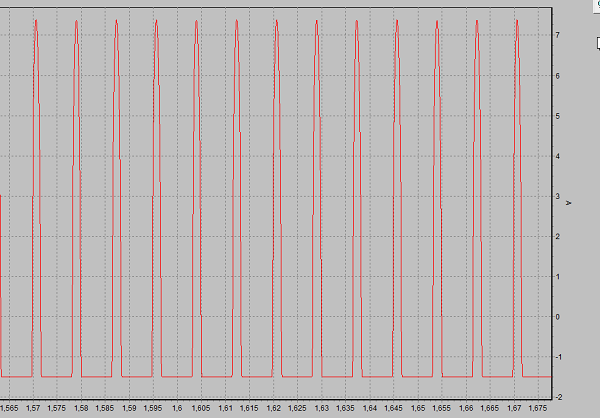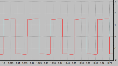 It gets even stranger, when we look at what goes inside the rectifier bridge. This is the same as what comes out of the transformer. This is a square wave as can be seen in the next picture.